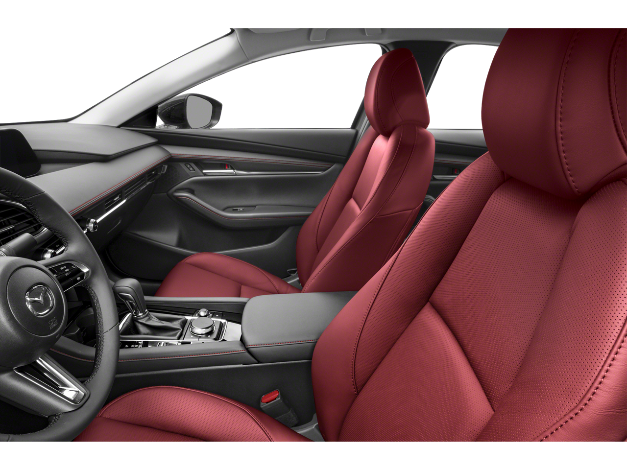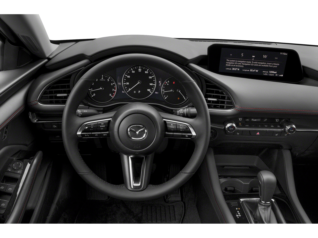 Equipped with 4-Wheel Disc Brakes, 8 Speakers, ABS brakes, Air Conditioning, Alloy wheels, AM/FM radio, Auto High-beam Headlights, Automatic temperature control, Brake assist, Bumpers: body-color, Compass, Delay-off headlights, Driver door bin, Driver vanity mirror, Dual front impact airbags, Dual front side impact airbags, Electronic Stability Control, Emergency communication system: Mazda Connected Services (3-year complimentary trial included), Exterior Parking Camera Rear, Front anti-roll bar, Front Bucket Seats, Front Center Armrest, Front dual zone A/C, Front reading lights, Front wheel independent suspension, Fully automatic headlights, Heated door mirrors, Heated front seats, Heated Front Sport Bucket Seats, Illuminated entry, Knee airbag, Leather Seat Trim, Leather Shift Knob, Leather steering wheel, Low tire pressure warning, MAZDA CONNECT Infotainment System, Mazda Navigation System, Memory seat, Occupant sensing airbag, Outside temperature display, Overhead airbag, Overhead console, Panic alarm, Passenger door bin, Passenger vanity mirror, Power door mirrors, Power driver seat, Power moonroof, Power steering, Power windows, Radio data system, Radio: AM/FM/HD Audio System, Rain sensing wipers, Rear seat center armrest, Rear side impact airbag, Rear window defroster, Remote keyless entry, Speed control, Speed-sensing steering, Split folding rear seat, Steering wheel mounted audio controls, Tachometer, Telescoping steering wheel, Tilt steering wheel, Traction control, Trip computer, Turn signal indicator mirrors, Variably intermittent wipers, and Wheels: 18 x 7J Aluminum Alloy.